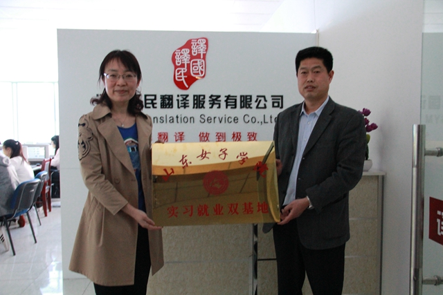 为加强校企合作,开拓应用型外语人才培养模式思路,切实做好学生的专业实践和校外实习、就业工作,4月18日下午,外国语学院院长赵淑容、副院长曹翠红一行赴济南译国译民翻译服务有限公司和济南盟泰科技有限公司进行调研,看望实习就业学生,就深化合作进行深入交流,双方正式签订实习、就业协议,为今后进一步合作奠定基础。