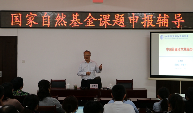 近日,国家自然科学基金课题申报、高水平论文写作学术辅导报告会在办公楼第四会议室举行。报告会邀请了中国科学院科技战略咨询研究院研究员徐伟宣教授、中国科学院科技战略咨询研究院管理所所长李建平教授分别做国家自然科学基金课题申报和高水平论文写作的专题辅导报告。副校长刘正林出席报告会。学校经济学院、工商管理学院、会计学院、旅游学院、数据科学与计算机学院等主要负责人及骨干教师参加了报告会。