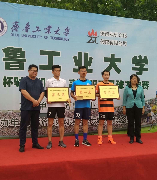 5月6日-19日,由友乐文化传媒有限公司承办的友乐杯驻济机关、高校教职工足球赛在齐鲁工业大学举行。本次比赛共有机关、医院和驻济高校的8支球队参加,学校教工男子足球队应邀参加了比赛。在小组赛中,学校教工男子足球队表现了不俗的实力,以两胜一平的成绩晋级排名赛。随后,在季军争夺战中,学校教工男子足球队发挥更加出色,以6:2战胜对手,最终以三胜一平的不败战绩获得第三名。