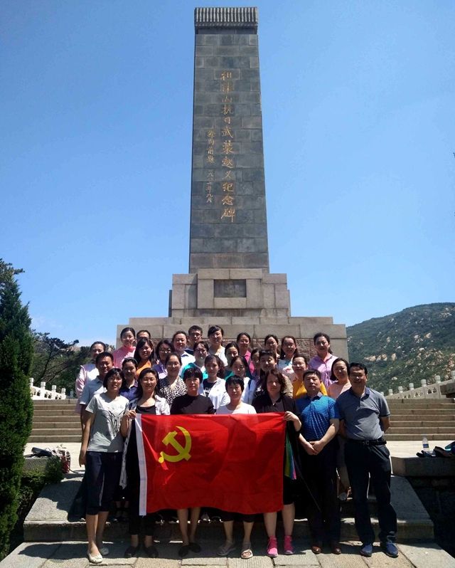 在徂徕山抗日战争纪念碑前,全体党员面向党旗重温入党誓词,并仔细阅读碑文,怀着崇敬的心情,全体人员听取了徂徕山抗日武装起义介绍。在徂徕山抗日武装起义展室,听讲解人员详细介绍了当年英雄们高举红旗,聚集在徂徕山抗日救亡的事迹,大家深受教育和鼓舞。