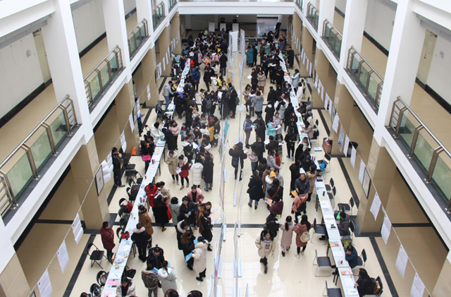 近日,学校教育学院2019届毕业生双选会在博文楼大厅举行,107家招聘单位,600多名学生前来参加此次双选会。招生就业处、教育学院相关负责人到场协调指导工作。