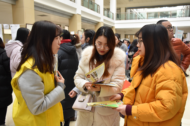 室外虽是接近零下9度的严寒,博文楼大厅依然气氛热烈。双选会上,招聘单位本着服务学生、服务社会、诚信招聘、择优录用的原则,耐心细致地向同学们介绍单位概况、招聘岗位、薪资待遇、涉及领域等。应聘者手持自己精心准备的简历,根据自己的专业特长,主动了解心仪企业的情况并投递简历。会后,部分招聘负责人召集有意向的毕业生进行了进一步的宣讲,并组织面试。