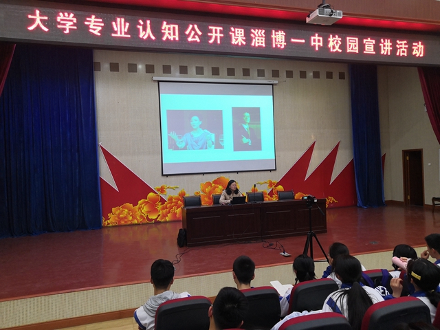 4月1日,山东省大学专业公开课校园宣讲在淄博市举行,来自山东大学、山东财经大学、山东农业大学等7所高校的9名教授专家参加,涉及七大学科门类的八个专业。我校英语专业教研室主任吕婷老师承担了文学类的公开课,在临淄中学、淄博一中分别介绍英语专业。