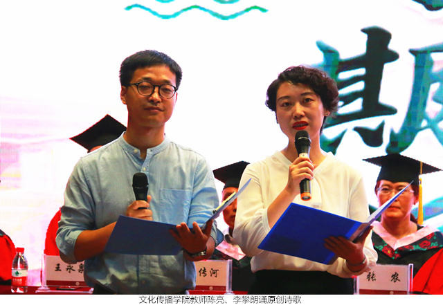 典礼的最后,文化传播学院教师陈亮、李攀深情地朗诵了原创诗歌《未来可期》,真挚的话语、细腻的情感、美好的回忆、深深的祝福,伴着优美的音乐,直达心底,全场的师生、家长无不为之感动。在一阵阵掌声和一声声道别中,典礼落下帷幕。