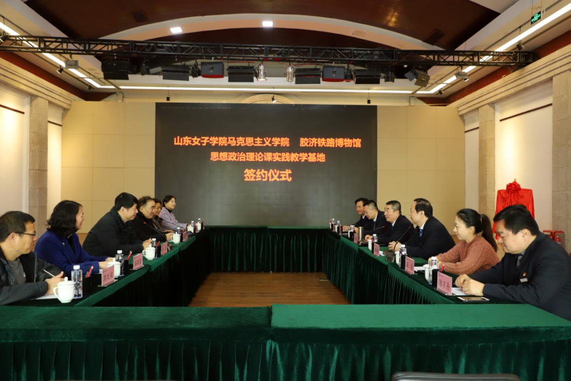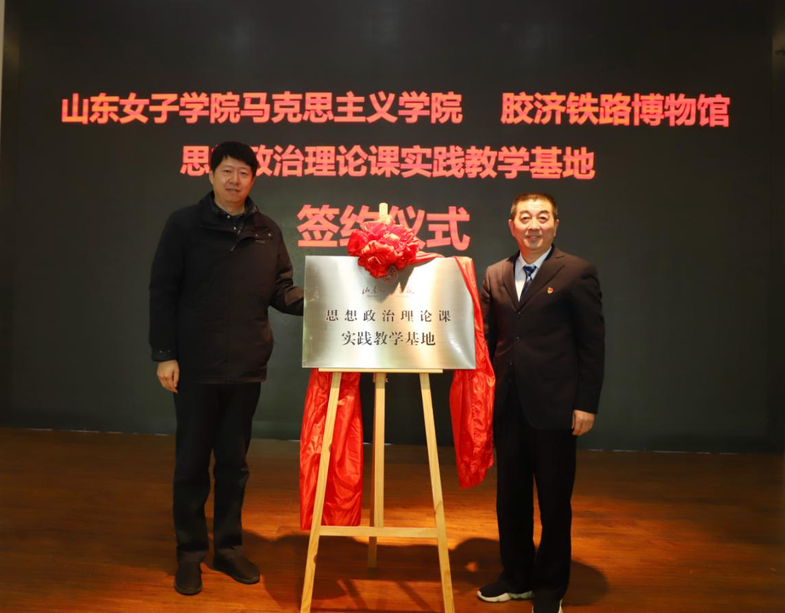 座谈会后,双方领导共同为山东女子学院思想政治理论课实践教学基地揭牌。