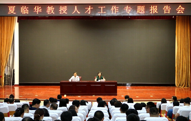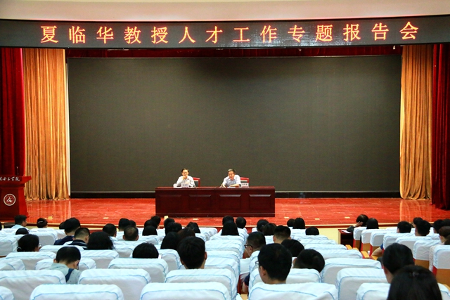 5月23日,学校邀请青岛大学原党委书记夏临华教授作题为“贯穿高校人才工作中的一些思想观念”的专题报告。学校领导、科级及以上领导干部、教研室主任参加本次报告会,党委书记郭翠芬主持报告会,校长盛国军作总结发言。