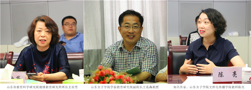 与会专家交流了读书心得体会。王丽萍教授谈到,《成长的印记》涵盖了平等、诚信、鼓励、交流、因材施教等很多原则,尤其是40个案例能引发很多家长的共鸣。孙应琢从家庭教育、家庭建设以及对省妇联推进的“母亲素质提升工程”角度,谈了《成长的印记》一书的独特价值与意义。山东女子学院学前教育研究院副院长王连森教授认为,《成长的印记》内容全面、体例严整、案例鲜活、观点新颖,是一本不可多得的家庭教育宝典。山东省教育科学研究院继续教育研究所所长王治芳认为,《成长的印记》是作者从大教育的视角,对育儿经验的总结,内容设计自成体系,观点新颖独到,提供了家庭教育的科学理念和方法。山东女子学院文化传播学院教师陈亮从女性和儿童的教育与研究切入,围绕尊重儿童开展正面教育、接纳儿童探讨解决问题办法、增强规矩意识、开展朋辈教育等,谈了收获与体会。读书会其他成员和教师代表还围绕《成长的印记》的教育理念、装帧设计等进行了研讨。
