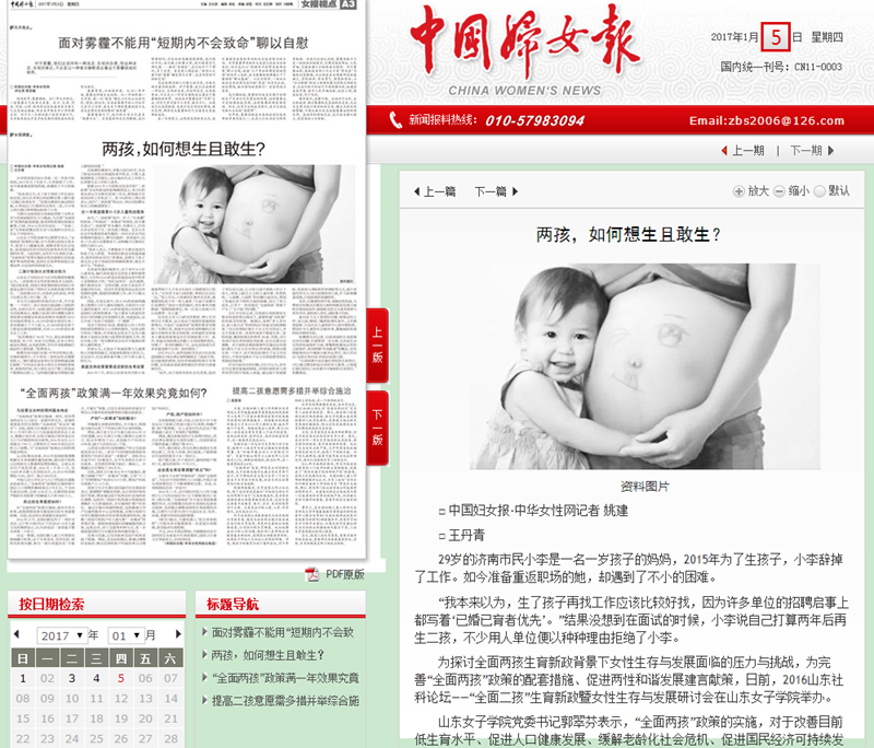 山东女子学院社会与法学院教授张雅维认为,二孩政策对女性的影响是多方面的。“就目前来看,我国生育政策的制定和执行有意或无意中忽视了男性在生育和家庭中的责任。二孩政策出台后,对很多女性来说,养育子女和正常工作只能二选一。”
