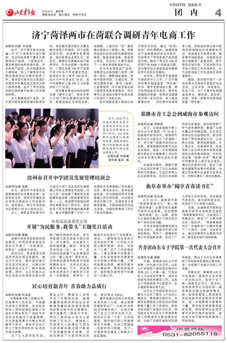 本报讯/记者 邹雁 日前,共青团山东女子学院第一次代表大会召开,山东女子学院团干部和团员青年代表共115人齐聚一堂,代表全校1万余名团员青年,共同总结谋划学校共青团工作。山东女子学院党委书记郭翠芬、校长盛国军等出席大会。
