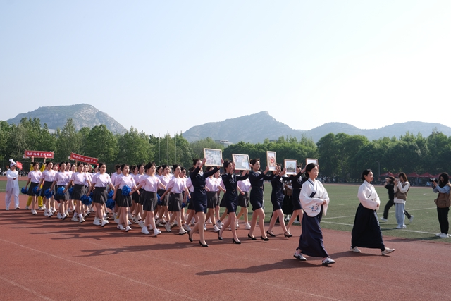 开幕式上,在身着中国传统服饰的引导员引导下,由各学院运动员代表、裁判员代表和教职工代表组成的方队依次入场。