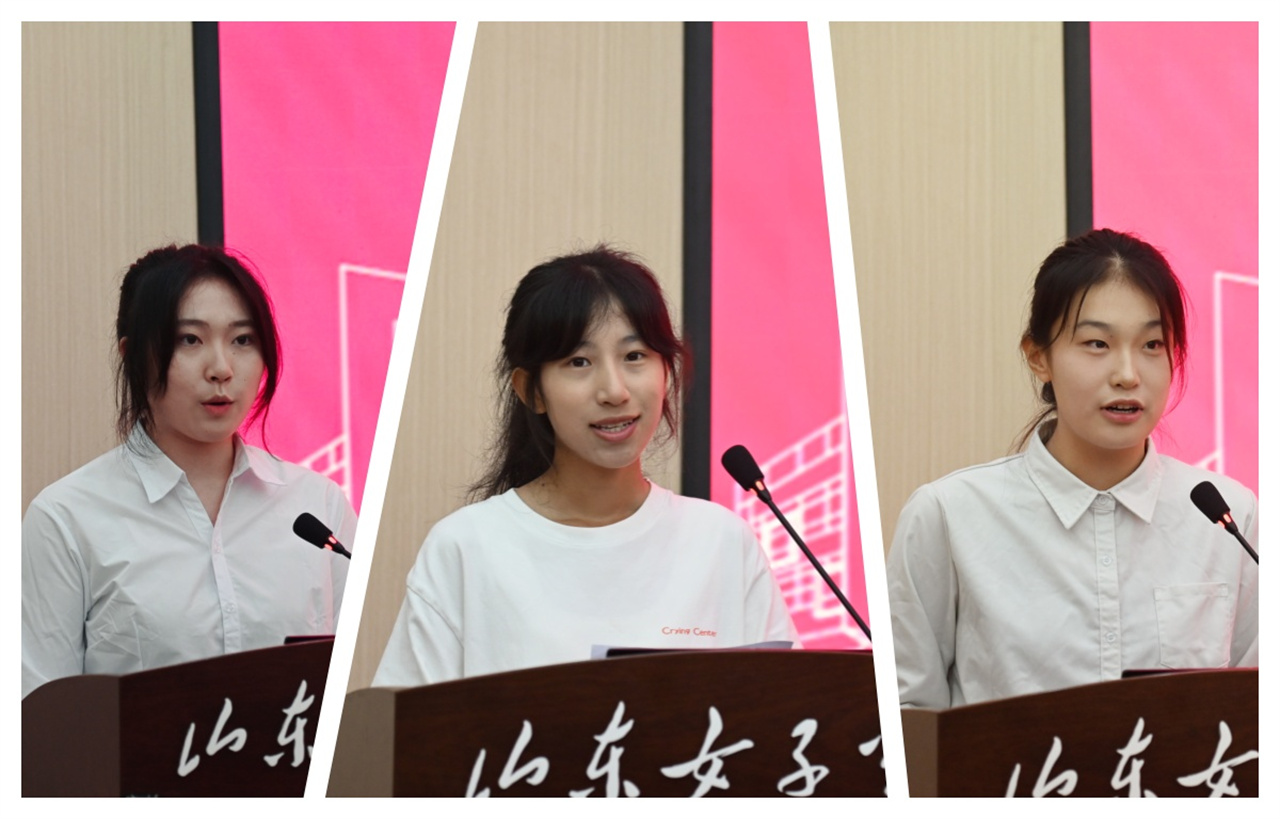 “清照”创新班学生代表于洋、学校女足队员代表高鑫、“巾帼班”学生代表史泽遥为老师们献词。