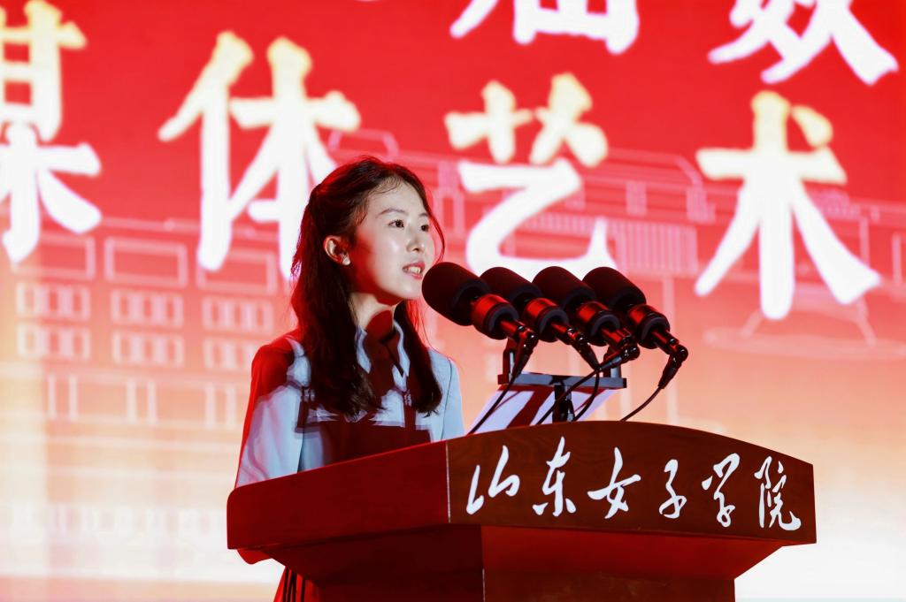 教师代表人工智能学院院长韩士元、校友代表数据科学与计算机学院2016级数字媒体艺术专业王妍依次发言。