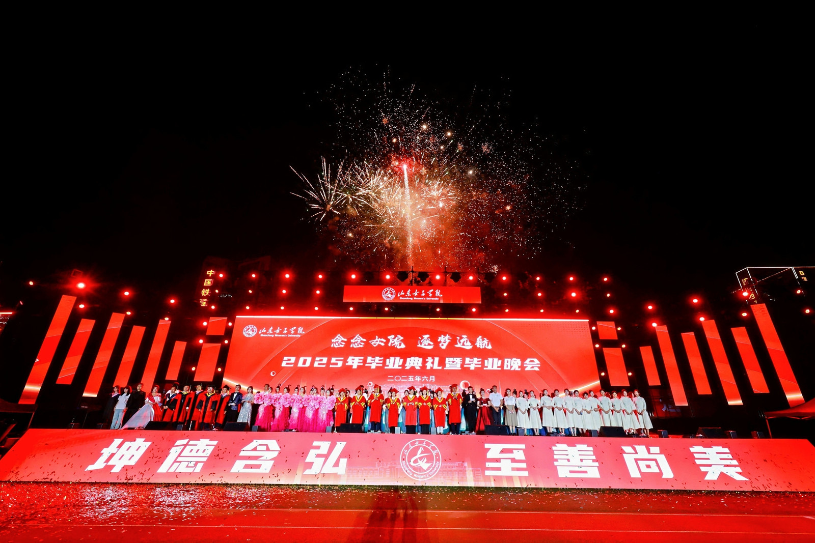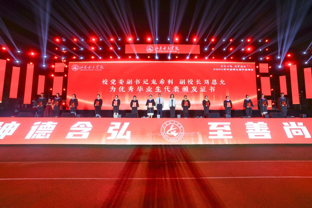 盛夏蝉鸣季,青春远航时。6月26日晚,山东女子学院2025年毕业典礼暨毕业晚会在学校田径场隆重举行。全体在校校领导出席典礼,学校各部门、单位党政主要负责人、全体辅导员及毕业班班主任、教职工代表、家长代表、校友代表及2025届全体毕业生参加典礼。