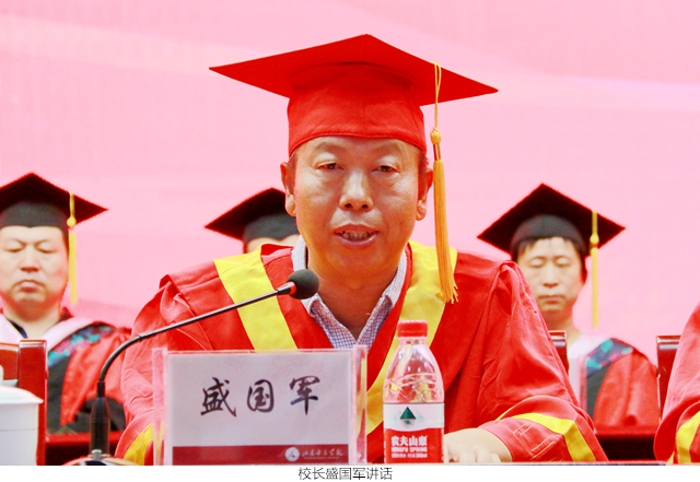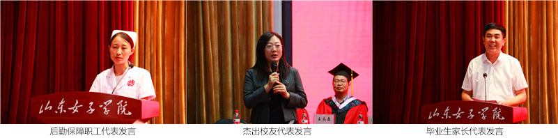 校长盛国军发表了热情洋溢的讲话。他首先代表学校向全体毕业生们表示热烈的祝贺,向辛勤培育同学们成长的老师们表示衷心的感谢,同时也向全体毕业生的家长们、亲人们表达崇高的敬意。盛国军回顾了同学们踏入山东女子学院以来的历程,为同学们取得的优良成绩点赞,为同学们助推学校建设和发展付出的努力表示感谢,分别之际,盛国军从个人、家庭、社会三个方面,对毕业生们寄予殷切期望:一是希望同学们不断成长。要以身边的人为镜子,通过别人对待自己的方式认识自己;要以事情为镜子,通过做事的实际效果认识自己,然后完善自我、不断成长。二是希望同学们生活幸福。要秉承“坤德含弘,至善尚美”的校训精神,努力做到宽厚谦和、仁爱包容。要有长远谋划、懂得取舍,用勤劳的双手和诚实的劳动创造美好生活。三是希望同学们事业有成。要有自己的工作和事业,把自己的小我融入祖国的大我,把个人事业融入时代的需要,为实现中华民族的伟大复兴贡献青春力量。