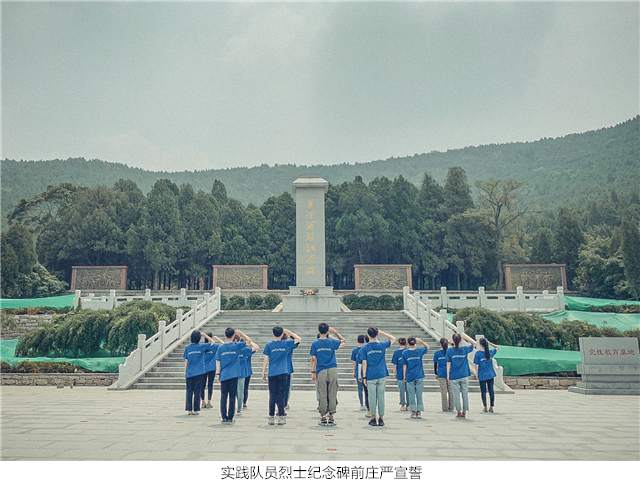 在全国教育大会上,习近平总书记强调,要在厚植爱国主义情怀上下功夫,让爱国主义精神在学生心中牢牢扎根。7月12日,为充分激发爱国热情、广泛凝聚奋斗力量,“E初心”科技支农实践队先后来到大峰山革命根据地纪念馆、中共长清县委旧址,参观了解革命先烈带领泰西地区人民作战、生活、生产的场面与党史事实,共同回顾党的光辉历史,共同缅怀革命先烈浴血奋斗的英雄事迹,共同重温可歌可泣的革命历史,上了一堂深刻的党性教育课。“没有人民群众这个‘基’,没有共同理想信念这个‘魂’,就没有革命的胜利……”大家不时驻足观看,认真听取讲解,对党政军民“信仰如山、一心为民、不怕牺牲、勇往直前”的革命精神产生强烈共鸣。在大峰山革命烈士陵园,怀着无比崇敬的心情瞻仰和缅怀长眠于此的240多位革命先烈,在巍峨耸立的烈士纪念碑前,全体实践队员重温入团誓词,句句千钧,表达了坚定的理想信念和真挚的爱国情感。