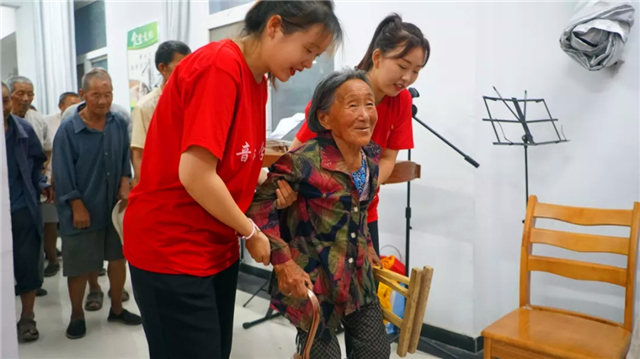 敬老爱老助老是中华民族的传统美德,为学习习近平总书记倡导的用实际行动践行“老吾老以及人之老”的孝道理,为孝道美德注入了丰富内容和新的活力。7月12日晚,队员们给敬老院的老人们准备了一场精彩的“最美夕阳红敬老爱老”主题晚会。队员们搀扶着老人前来观看晚会,老人们一边认真的观看一边喝彩鼓掌,脸上都洋溢出幸福的笑容。晚会使老人们感受着新时代青年对老人的关怀,也增强了实践队员参与社会实践和社会服务的意识,培养和提升了自身的社会公德意识,为发扬传统美德贡献力量。