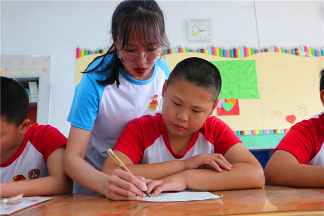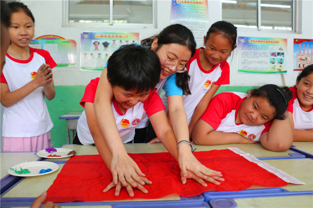 “暖心向YOUNG”志愿服务队针对学校课程安排及学生性格特点进行特色社团教学,更全方面、个性化地促进了学生们的全方面发展。扎染课堂上,孩子们被艺传千年的文化瑰宝深深吸引,心中悠悠一抹靛蓝,学生们独特的创造力跃然方布之上。外语交流课堂上,志愿者为学生们纠正发音,一句句标准的英文对话脱口而出。魔方社团,学生们灵巧的小手将杂乱的魔方一面面的还原。