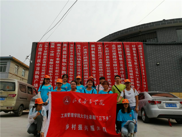 2019年暑期,工商管理学院组织“暖心向YOUNG”志愿服务队、山东女子学院农产品品牌支农调研团、山东女子学院乡村振兴宣讲团、创业实践营创新创业队、创业实践营梦想实践创业队等五支队伍开展暑期“三下乡”活动,参与学生人数67人,服务地点覆盖济南市市中区党家街道催马小学、罗而小学、烟台栖霞市、青岛平度市大泽山镇、临沂蒙阴县,源动力公司六处,助力当地农村的教育、农业及经济发展,以青春建新功,用奋斗创时代。