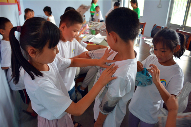 针对东南河村当地特殊环境导致的儿童较为缺乏自我效能感、自信心不足、不敢表达自己、内心比较敏感害羞等多种问题,队员们充分发挥社工专业特色,制定了一系列以活动来促进孩子们之间沟通、培养儿童自我效能的主题游戏,包括“松鼠松树”、“优点轰炸”、“挑战自我”等。运用社工游戏的方式,让孩子们主动探索自身,发现自己的优点,从内心寻得属于自己的自信,培养孩子敢于接受挑战的能力,增加他们的自我效能感。