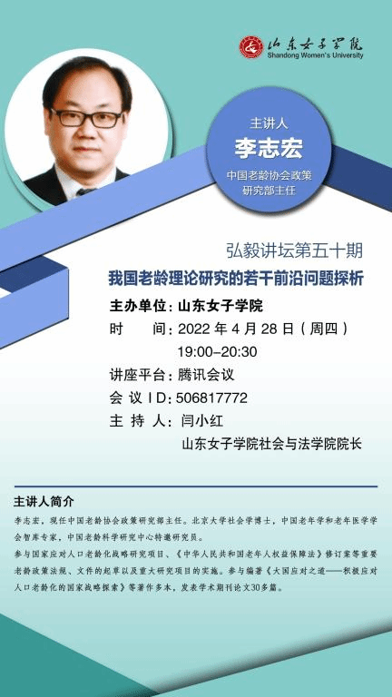 讲座主题:我国老龄理论研究的若干前沿问题探析
