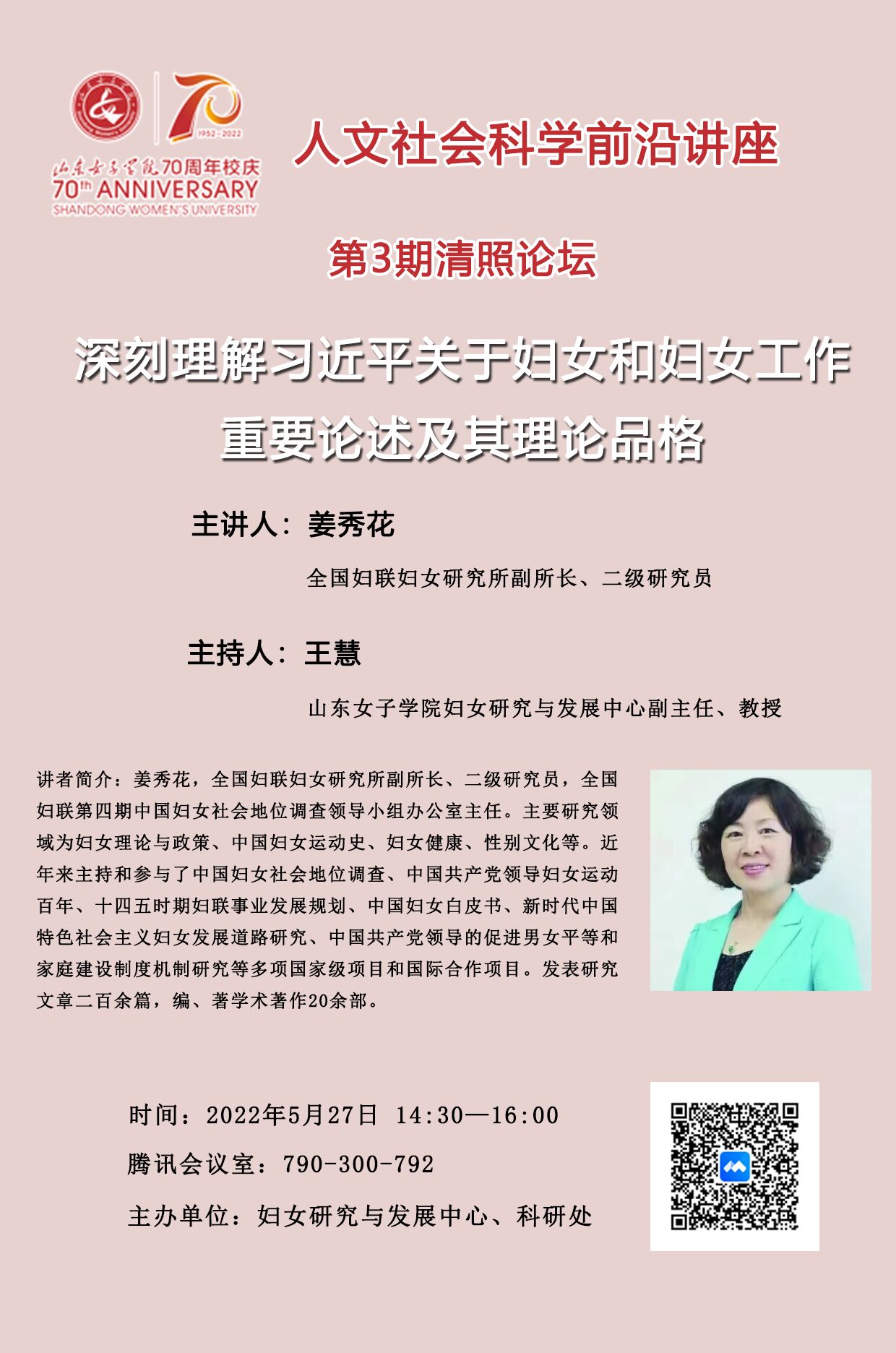 讲者简介:姜秀花,全国妇联妇女研究所副所长、二级研究员,全国妇联第四期中国妇女社会地位调查领导小组办公室主任。兼任中国妇女研究会副秘书长,中国中共党史人物研究会常务理事,中国人口学会社会性别专业委员会副主任。
