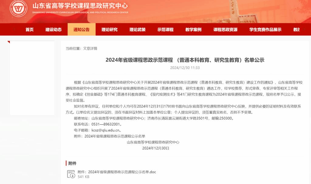 近日,山东省高等学校课程思政研究中心公布了《2024年省级课程思政示范课程》名单公示,教育学院傅晨教授负责的“幼儿园科学教育活动组织与指导”项目获批立项,标志着学院在课程思政建设方面取得新突破。