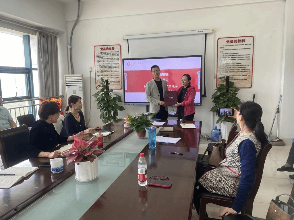 曲常军代表学院向王丽娟教授赠送了纪念品,宋小霞代表学院向王丽娟教授赠送了鲜花。