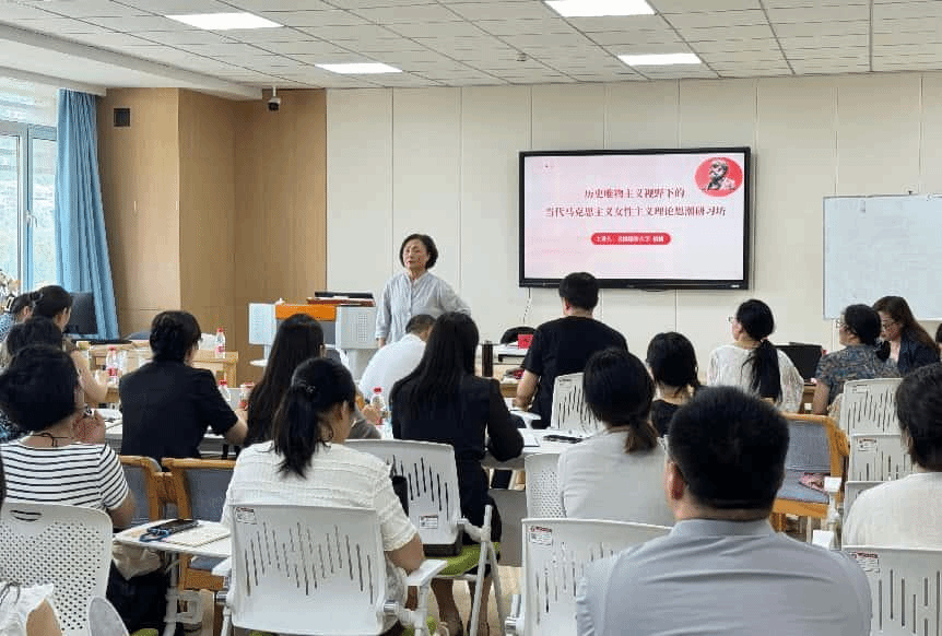 7月14日至15日,学校成功举办“唯物史观视角下的马克思主义女性主义前沿研习坊”,特邀美国德儒大学柏棣教授担任主讲嘉宾,聚焦马克思主义与女性主义的交叉议题展开深度研讨。本次研习坊由妇女研究与发展中心副主任、社会发展学院副院长王慧教授主持,社会发展学院女性学专业教师、马克思主义学院全体教师、“一带一路”沿线俄语区国家社会与妇女发展研究中心骨干、妇女发展与家庭建设学科团队人员及以及长清区妇联干部等60余人参与学习。