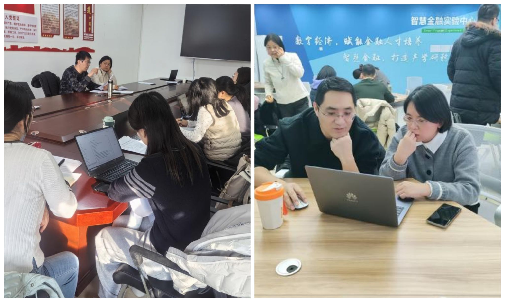 随后,学院又面向全体教师举办了国家自然科学基金项目申报辅导会。本次辅导特别邀请到了山东科技大学秦广鹏教授和田银花教授。两位教授均在国家自然科学基金项目研究与函评方面拥有深厚的造诣和丰富的实战经验。会上,秦广鹏教授和田银花教授分别结合自身成功申报与指导的案例,从国家自然科学基金的项目类型、申报要点、评审标准、申请书撰写规范以及如何突出创新性和科学性等方面进行了全面细致的经验分享。他们强调了选题的前沿性与现实意义,以及研究设计的严谨性与可行性。在经验介绍之后,两位教授还针对学院教师已准备的国家自然科学基金项目申报书进行了分组式、面对面的精细化辅导。他们逐份审阅申报书,从题目拟定、摘要撰写、研究内容设置、技术路线设计到预期成果等各个方面给予了具体的修改建议和优化方向,使在场教师受益匪浅,对提升申报书的整体质量起到了至关重要的推动作用。