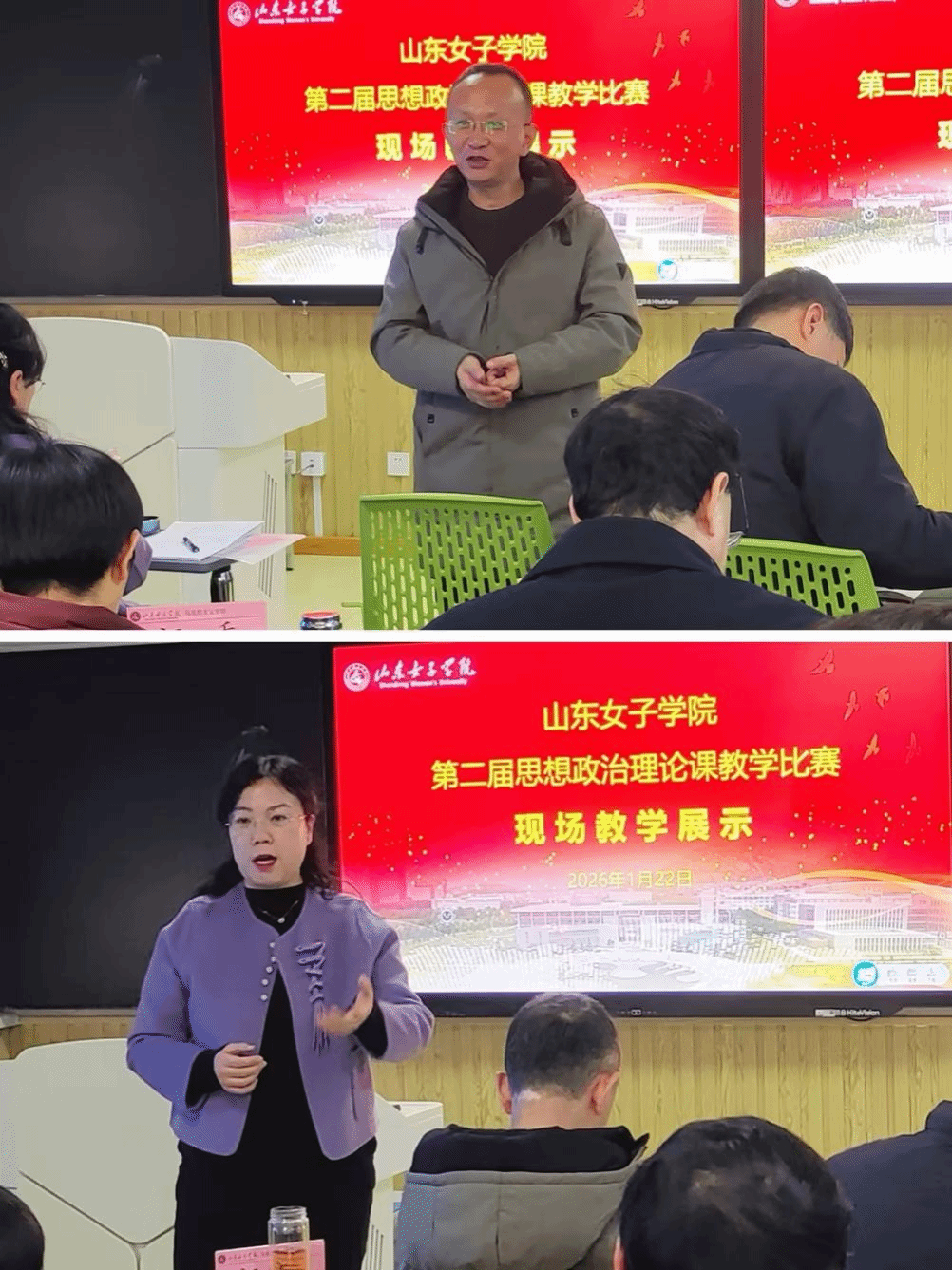 1月22日,学校第二届思想政治理论课教学比赛现场教学展示于求真楼403智慧教室举办。马克思主义学院11名教师参加比赛,学校教学质量监控与评估处、教务处相关负责同志到场指导,马克思主义学院全体教师到场观摩学习。本次比赛特邀两名大学生代表担任学生评委。
