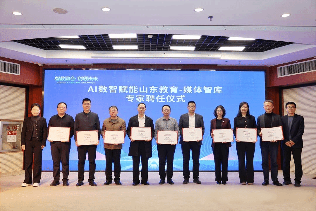 本次研讨会上,备受关注的“AI数智赋能山东教育——媒体智库”专家聘任仪式同期举行,韩士元与来自政、产、学、研领域的其他8位专家一同受聘,成为首批智库成员。本次会议汇聚政、产、学、研各界专家代表,共同探讨人工智能与教育深度融合的创新路径与发展前景,是山东省推动教育数字化转型、构建“人工智能+教育”新生态的重要平台。