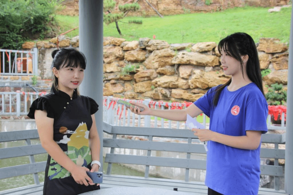 服务队先后走访调研村委会党员干部、山区工作者和建设者、游客以及村民等;徒步登山拍摄滴水崖、檀抱灵泉、登山云梯、铁索吊桥等山区景色;走访取景果蔬采摘园、儿童乐园、康养民宿等村民自主建设旅游设施;走进灵岩村拍摄村容村貌,了解民风民俗。在深入了解灵岩村自然、人文等特色的同时,挖掘灵岩村“党建引领”故事,为短视频宣传和新媒体推广积累充足素材。无论走到哪里,每一位被采访者的口中都离不开灵岩村现代版“愚公移山”精神:手扛肩提、不等不靠、自力更生、攻坚克难、造福百姓!服务队成员被灵岩村人的党建凝聚力所感染。十天的实践过程,服务队共拍摄趣味视频7条,投放短视频平台取得良好反响;各类平台、发布新闻报道19篇;专题宣传片也正紧锣密鼓的后期剪辑制作中。