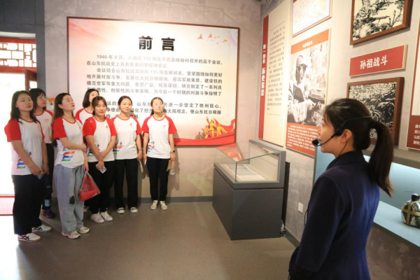 “诸梦之旅”社会实践团队志愿者们分别进行了礼仪培训和黑陶文化学习。为了进一步提升生态谷服务人员的综合素质,结合自身专业优势,志愿者们开展了义务礼仪培训——引导服务、餐桌礼仪以及化妆技巧,通过对相关知识的细致讲解,强化了工作人员对礼仪重要性的认识。诸城舜陶又称黑陶,是新石器晚期龙山文化的杰出代表,彰显着诸城源远流长的文化传承。志愿者们来到黑陶制作工艺体验馆,学习了黑陶的传承历史及制作过程,更好的传播传统文化,促进乡村文化振兴。“红心沂梦”社会实践团队在当地导游的带领下,发挥专业特长,对桃峪高干会议旧址、八路军115师在沂蒙纪念馆、苏家崮烈士陵园及战斗遗址进行了讲解。八路军115师在桃峪村召开的高干会议,制定了加强党的建设、政权建设和军事斗争的一系列方针政策,为中国抗日根据地巩固发展起到了巨大作用。著名的苏家崮战斗中,大部分战士牺牲,最后30余人誓死不为俘虏,跳崖殉国。看到无数英雄长眠的烈士陵园,攀登上苏家崮战斗遗址,队员们深感震撼,崇敬之情油然而生,也深刻认识到我们要铭记一切为中华民族和中国人民作出贡献的英雄们,学习英雄事迹,弘扬英雄精神。