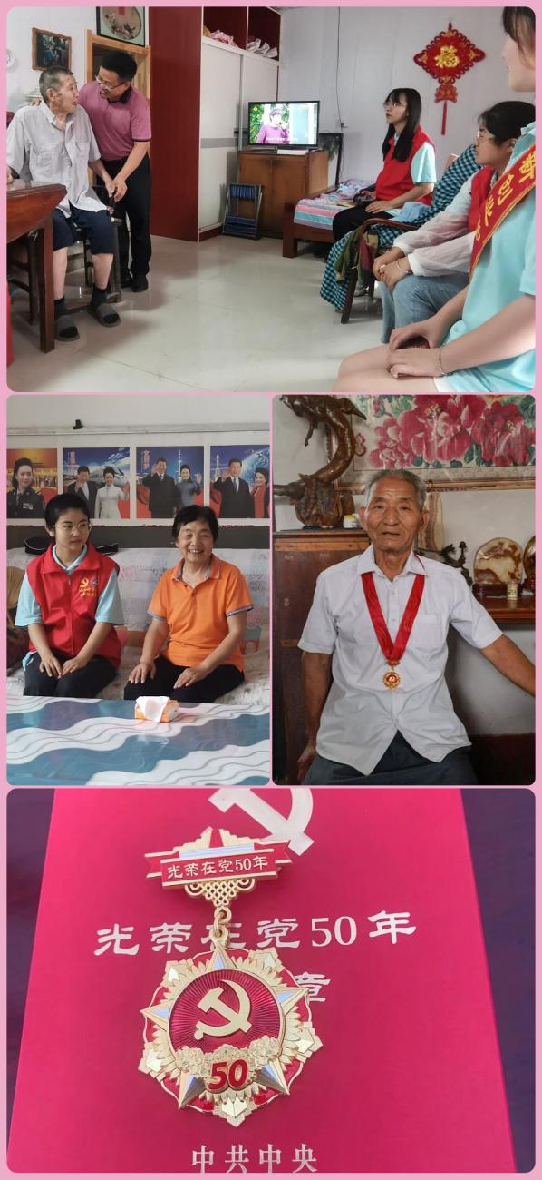 为深入学习中国共产党历史,党史学习实践团的同学们走访看望了西苏村获得“光荣在党50年”纪念章的老党员石志舜、石志芬和刘秀青三位老党员,听老党员讲党史故事、同忆革命情怀。