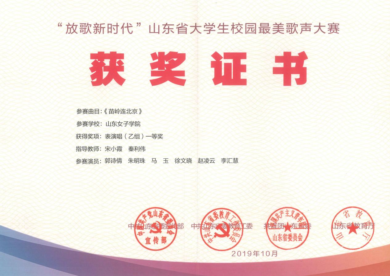 近年来,音乐学院秉承“以赛促学、以赛促练、以赛促教”,“把讲台变舞台、把舞台搬进课堂”的创新实践教学模式,将学科发展与艺术实践紧密结合,全面提高应用型人才培养质量,师生在教育部、文化部、教育厅等省部级比赛中获奖200余项;其中我院学生荣获第十届中国艺术节“群星奖”;荣获国家教育部第二、三、四、五届大学生艺术展演二等奖;荣获教育厅“互联网+”大学生创新创业大赛银奖;荣获第十四届全国大学生电子商务“创新、创意及创业”挑战赛山东赛区选拔赛省级一等奖和二等奖;并在山东省委宣传部、山东省教育厅专业赛事中屡获佳绩。