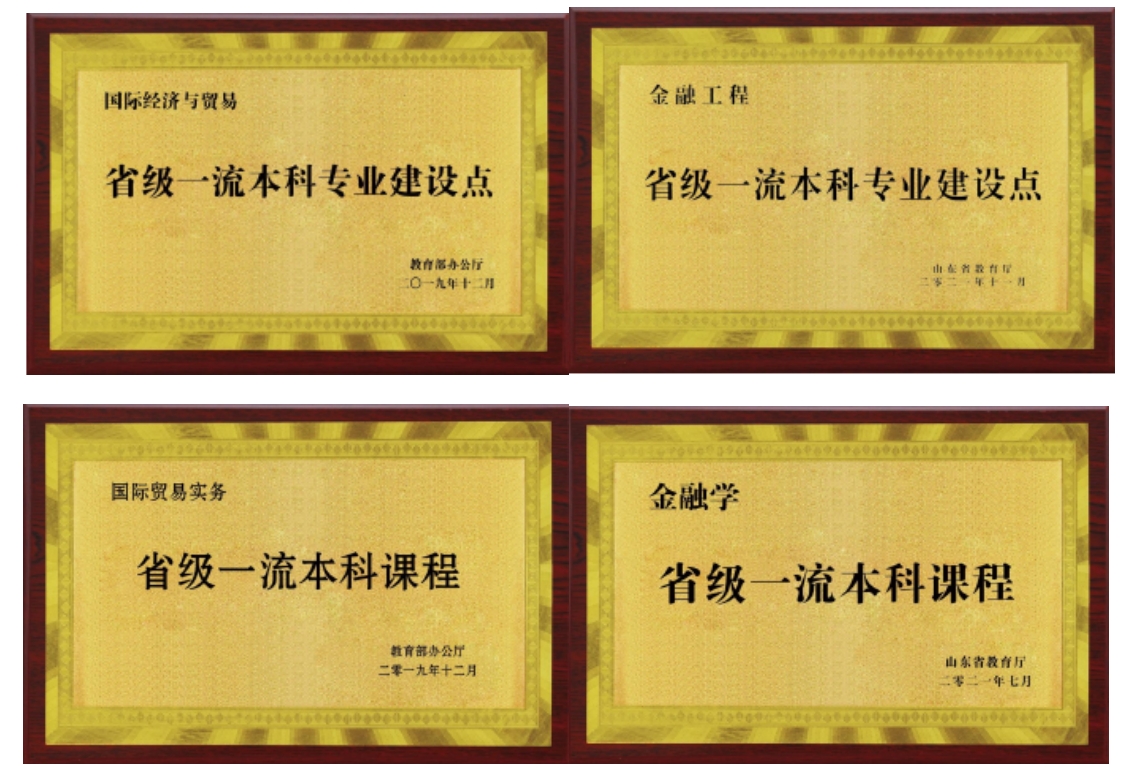 近年来,学院不断加大专业、师资、课程、教研、实验平台建设,切实提高人才培养质量。国际经济与贸易专业、金融工程专业获批山东省一流本科专业建设点,其中,金融工程专业获批山东省产教融合示范性品牌专业。金融学专业获批山东省普通本科高校重点领域教学改革试点项目(“111”计划)。数字金融教师团队获批山东省高校黄大年式教师团队,多名教师在山东省高校教师教学创新大赛、山东省高校青年教师教学比赛、山东省高校教师信息化教学比赛中获奖。《金融学》课程获批国家混合式一流课程以及教育部“拓金计划”示范课,《国际贸易实务》获批山东省线下一流课程,《微观经济学》《统计学》《公司金融》课程获批山东省混合式一流课程。获批山东省高等学校教学改革项目重点项目1项、一般项目2项,教育部高教司产学合作协同育人项目14项。学院建有山东省跨境电商实训基地、国家级电子商务虚拟仿真实验教学分中心,与企业共建数字经济与文旅产业学院、智慧商务产业学院,结合数字贸易、互联网金融、经济运行动态仿真等实验室,不断提升人才实践能力。