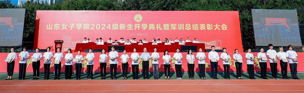 党委委员、副校长李缨宣读《山东女子学院关于表彰2024级新生军训先进集体和先进个人的决定》。与会领导为获得优秀教官、优秀助教、军训标兵、内务整理标兵宿舍等先进集体和个人颁奖。