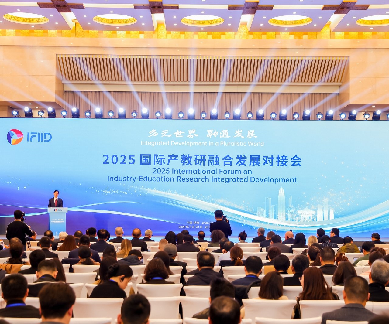 3月20日,由省委外办、省教育厅、省贸促会指导,学校承办的2025国际产教研融合发展对接会在山东大厦金色大厅举行。山东省人大常委会党组副书记、副主任孙立成,山东省教育厅二级巡视员李文生,省委外办副主任李永森等领导出席开幕式,学校党委副书记、校长李光红受邀出席会议并做主题演讲。有关高校、科研机构、商协会、跨国公司和重点企业近500位代表参加对接会。