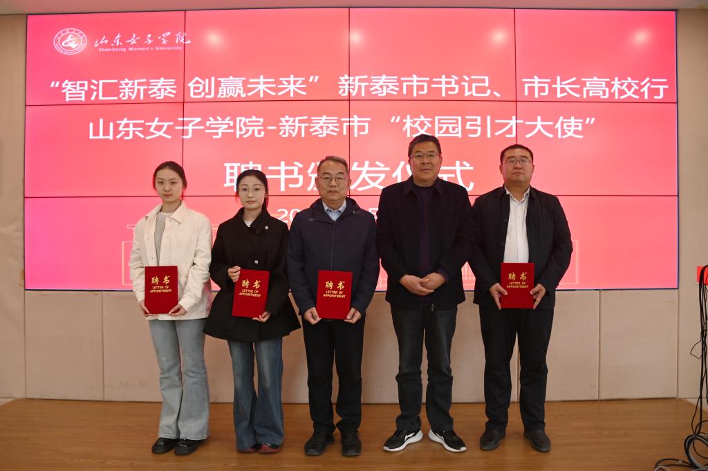 会上,李缨与匡卫分别代表校地双方签订了校地战略合作协议;新泰市人社局社保中心副主任朱秀锦为山东女子学院——新泰市“校园引才大使”颁发了聘书;学校艺术设计学院、旅游学院、人工智能学院和工商管理学院相关负责人就社会服务优势项目分别进行了现场推介。