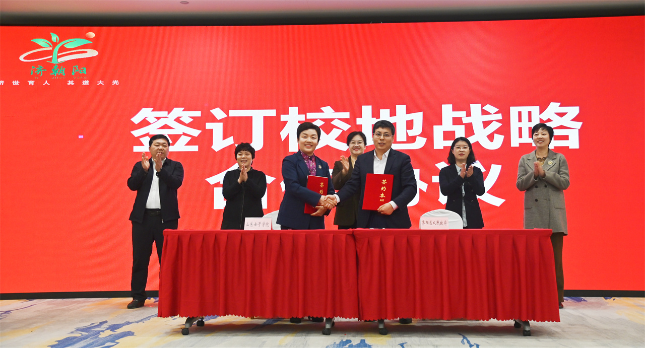 为深入贯彻落实习近平总书记关于注重家庭家教家风建设的重要论述及《山东省家庭教育促进条例》等省市文件精神,有序推进家庭教育提升工程落地实施,3月14日上午,济南市济阳区举办家庭教育提升工程签约仪式,仪式上学校与济阳区签订校地战略合作协议。济南市妇联主席田迎,济阳区委书记秦蕾、区委副书记王云刚、区人大常委会副主任陈忠心、区政府副区长吴涛、区政协副主席毕义忠,学校党委副书记、校长李光红,副校长田立新出席仪式。仪式由王云刚主持。